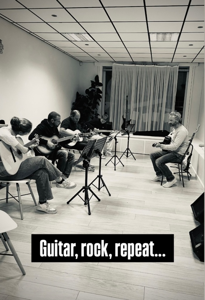 Eigen gitaar meebrengen (akoestisch of elektrisch). Geen gitaar? Geen probleem, je kan er bij de start eentje huren of aankopen bij ons ( geef ons gerust een seintje op voorhand).